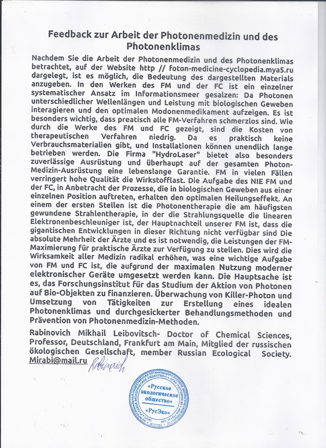 С Уважением, Титов Михаил Николаевич, ген. директор НИИ фотонной медицины и фотонного климата имени Ж. И. Алфёрова и ген. директор ООО «Гидролазер», к.ф.-м.н., лауреат премии Ленинского комсомола