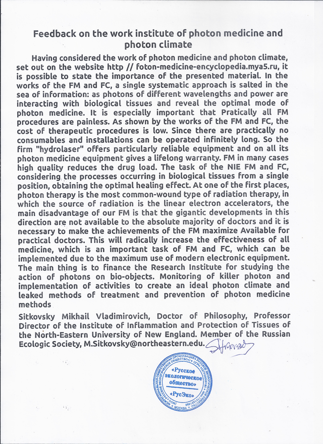С Уважением, Титов Михаил Николаевич, ген. директор НИИ фотонной медицины и фотонного климата имени Ж. И. Алфёрова и ген. директор ООО «Гидролазер», к.ф.-м.н., лауреат премии Ленинского комсомола