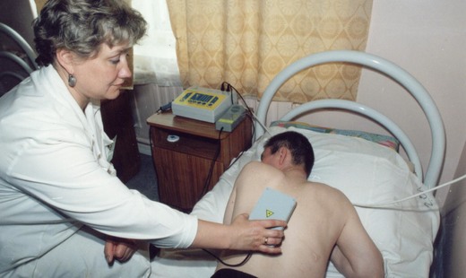Сеанс лазерной терапии – облучение паравертебральных зон.